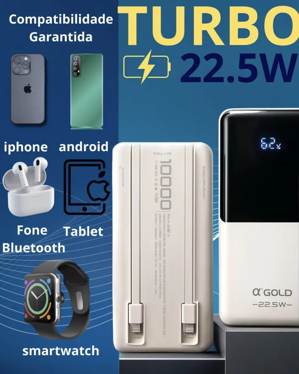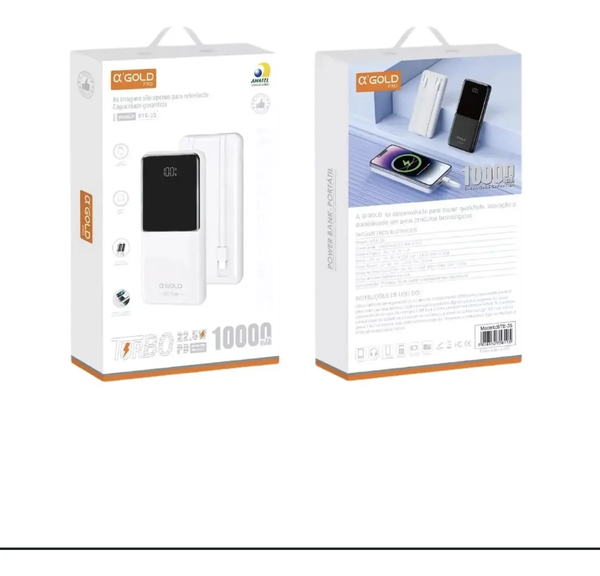 O Power Bank A’Gold BTE-35 é a solução ideal para quem busca praticidade e eficiência no carregamento de dispositivos móveis. Com uma capacidade de 10000mAh, ele garante energia suficiente para recarregar seu smartphone ou tablet várias vezes, permitindo que você fique conectado onde quer que esteja. Este carregador portátil possui tecnologia de carga rápida de 22.5W, oferecendo uma experiência de carregamento ágil e eficiente.