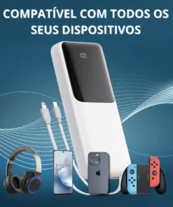 Compatível com dispositivos USB, tipo C e Lightning, ele se adapta a diversas marcas e modelos, tornando-se um acessório versátil para o seu dia a dia. O design compacto e leve do BTE-35 facilita o transporte, permitindo que você o leve na bolsa ou mochila sem esforço. Além disso, vem com um cabo incluído, pronto para uso imediato, para que você não precise se preocupar em adquirir acessórios adicionais. Com voltagem de saída de 5V/9V/12V, este power bank é ideal para atender às suas necessidades de carregamento em diferentes situações. A bateria de Lithium Polymer garante durabilidade e segurança, tornando-o uma escolha confiável para quem valoriza qualidade e desempenho.